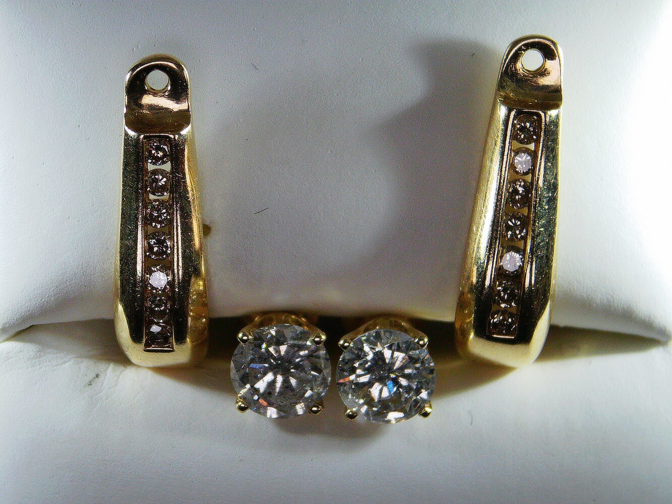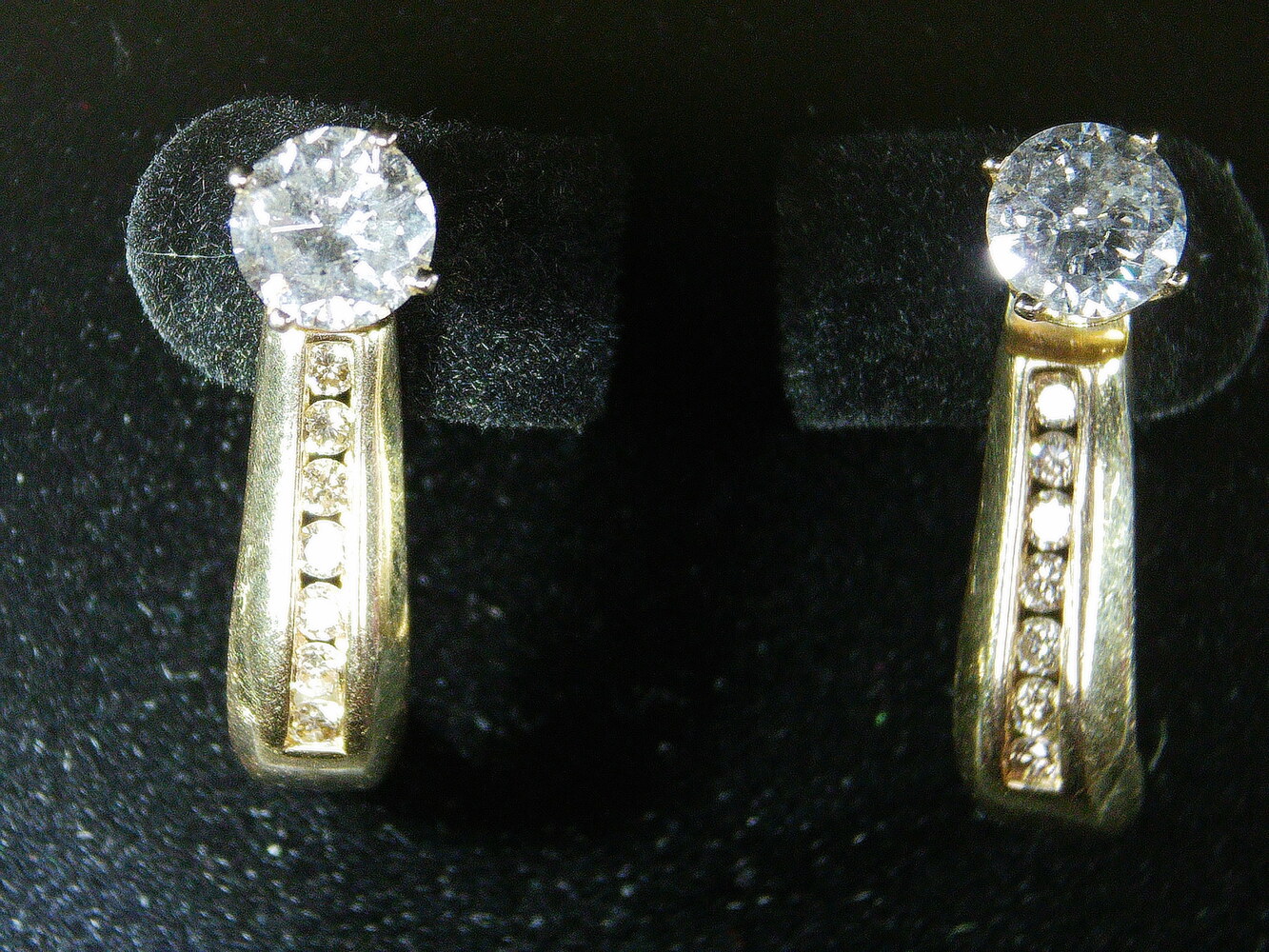 14KT YELLOW GOLD DIAMOND STUD EARRINGS WITH GOLD & DIAMOND JACKETS. 1 CTW, WEIGHS 2.5 DWT.