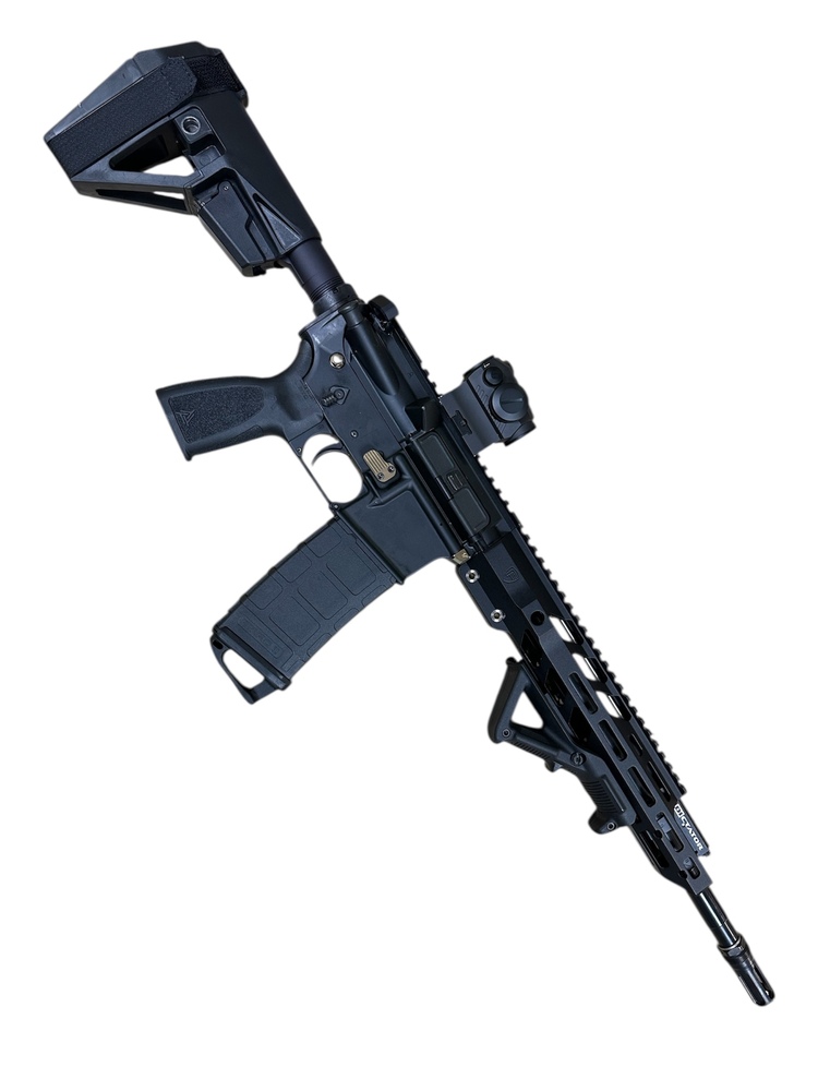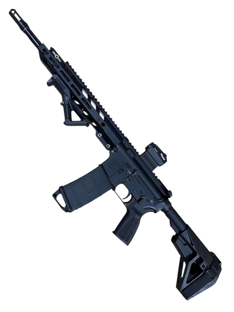 ANDERSON MANUFACTURING AM-15, SEMI AUTOMATIC PISTOL, CHAMBERED IN 5.56 NATO. 14-1/2 INCH BARREL, COMES WITH SIG SAUER ROMEO 5 RED DOT SIGHT, ONE MAG, MAGPUL ANGLED FOREGRIP, AND SB ARM BRACE. FIREARM IS SUBJECT TO ATF LAWS AND CANNOT HAVE A STOCK INSTALLED WITHOUT FILING SBR TAX FORMS. THIS FIREARM IS A HANDGUN AND CAN ONLY BE SOLD TO WV RESIDENTS. ALL FIREARM PURCHASERS MUST COMPLETE AND PASS A BACKGROUND CHECK.