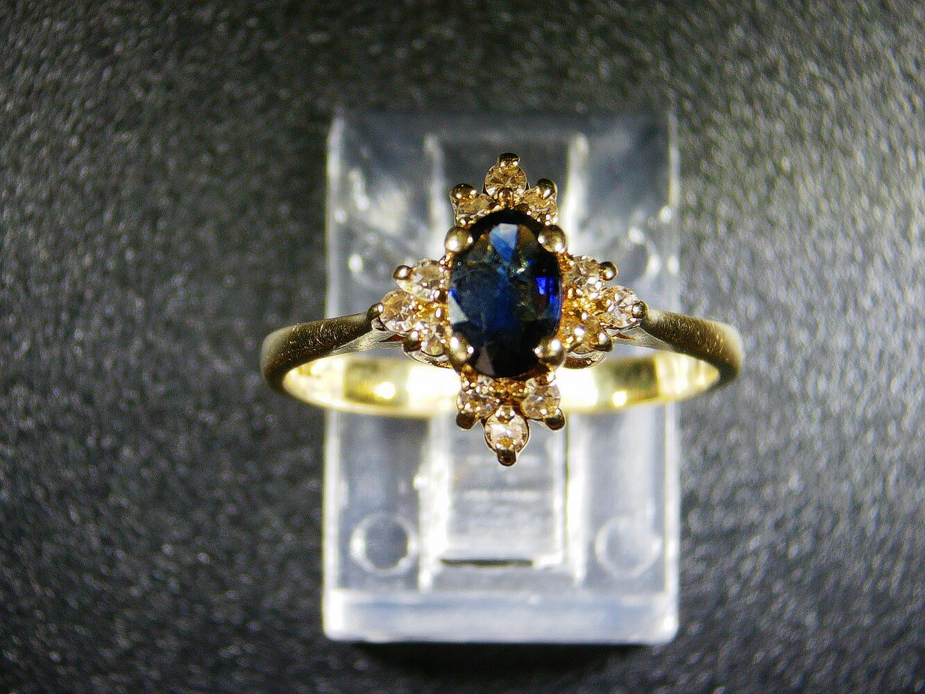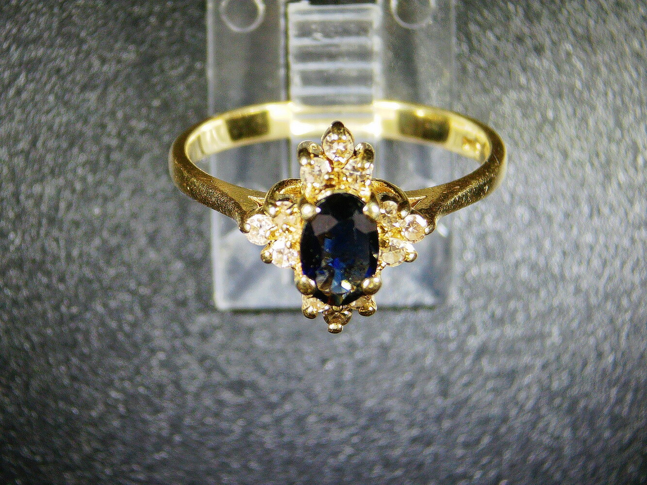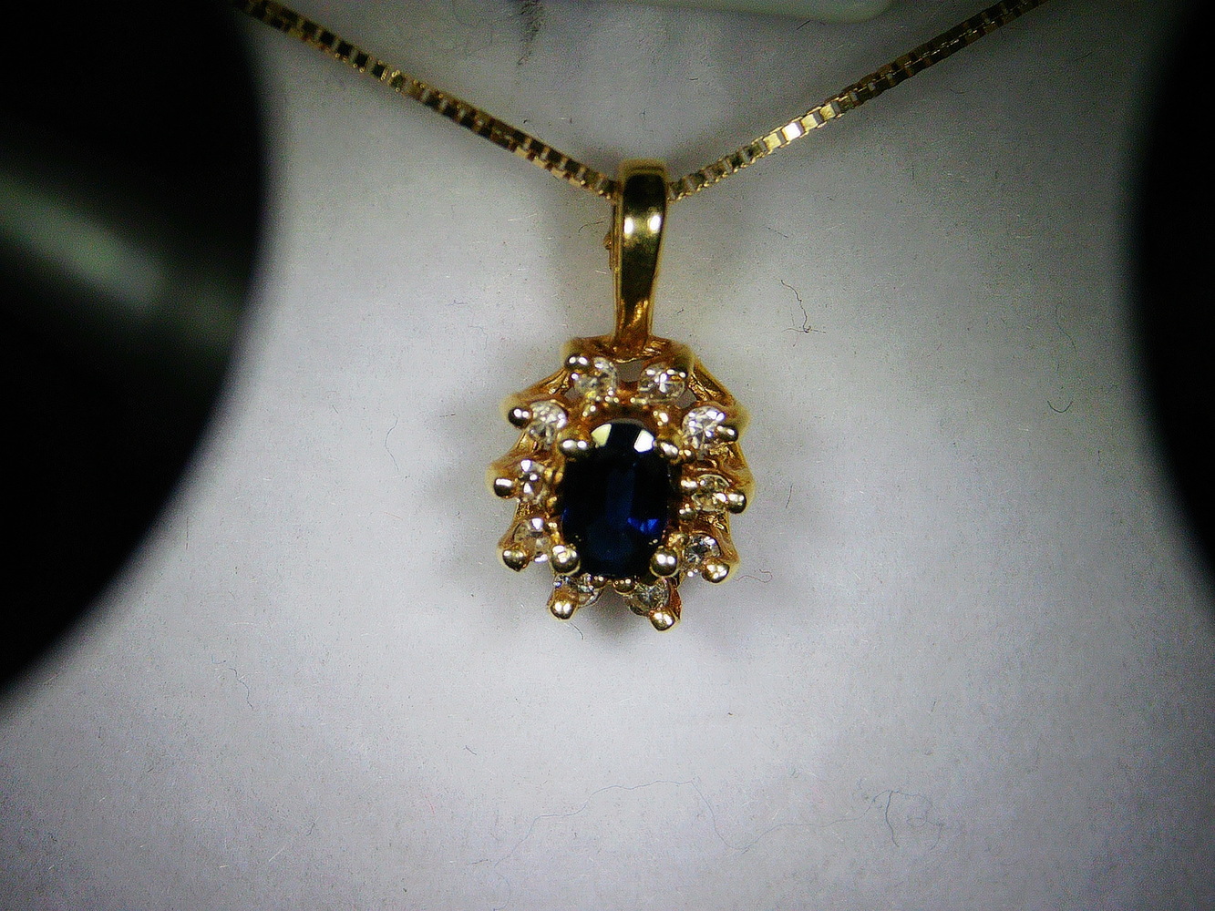 MATCHING 14KT YELLOW GOLD RING & NECKLACE SET. OVAL CUT SAPPHIRE CENTER STONES WITH DIAMOND CLUSTER SURROUNDING. RING SIZED 6-1/2 & 18 INCH NECKLACE LENGTH. 3.1 DWT TOTAL WEIGHT.
