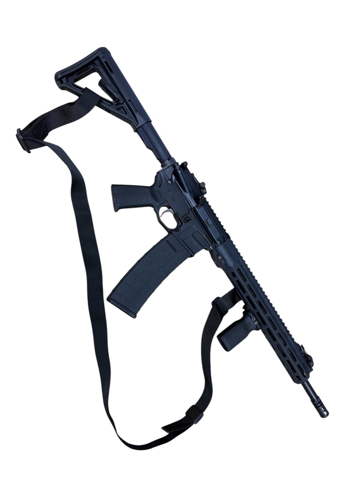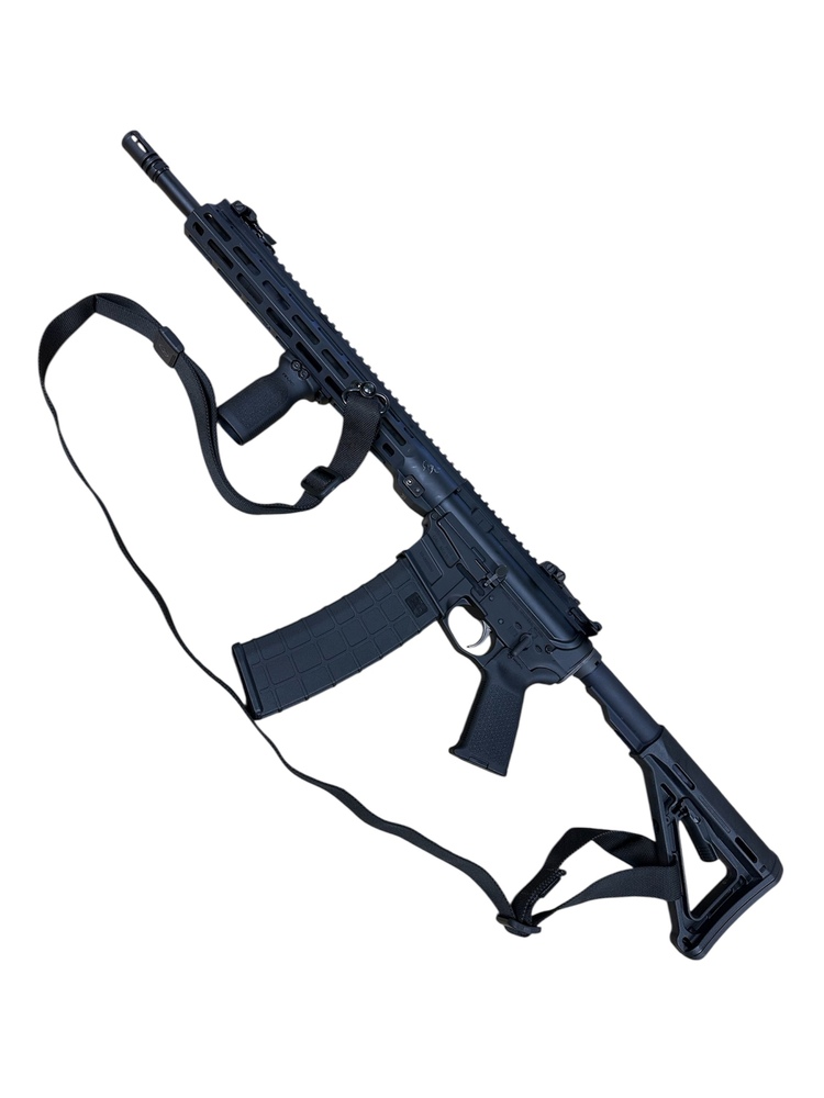 SAVAGE MODEL MSR-15, SEMI AUTOMATIC RIFLE, CHAMBERED IN 5.56 NATO. MAGPUL FURNITURE (FORREND, GRIP, STOCK), MAGPUL FOREGRIP WITH MAGPUL M-LOK TO PICATINNEY MOUNT, MAGPUL BRANDED SLING WITH MAGPUL QUICK DETACH SLING MOUNT, MIDWEST INDUSTRIES FLIP UP SIGHTS, & 40 ROUND PRO MAG MAGAZINE. ALL FIREARM PURCHASERS MUST COMPLETE AND PASS A BACKGROUND CHECK. GREAT VALUE
