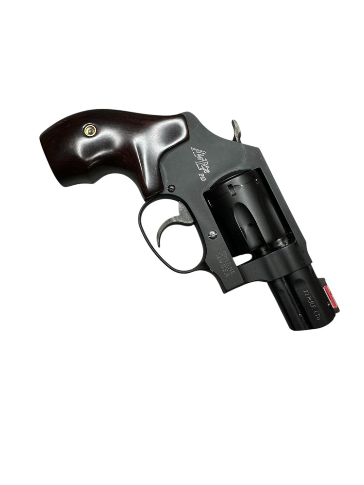 SMITH & WESSON MODEL 351PD (AIR LITE PD), DOUBLE ACTION REVOLVER, CHAMBERED IN .22 MRF (.22 WMR/.22 MAG). COMES WITH ORIGINAL BOX, PAPERWORK, AND LOCK KEYS. HI-VIZ SIGHTS, GOOD SHAPE. FIREARM IS A HANDGUN AND CAN ONLY BE SOLD TO WV RESIDENTS. ALL FIREARM PURCHASERS MUST COMPLETE AND PASS A BACKGROUND CHECK.