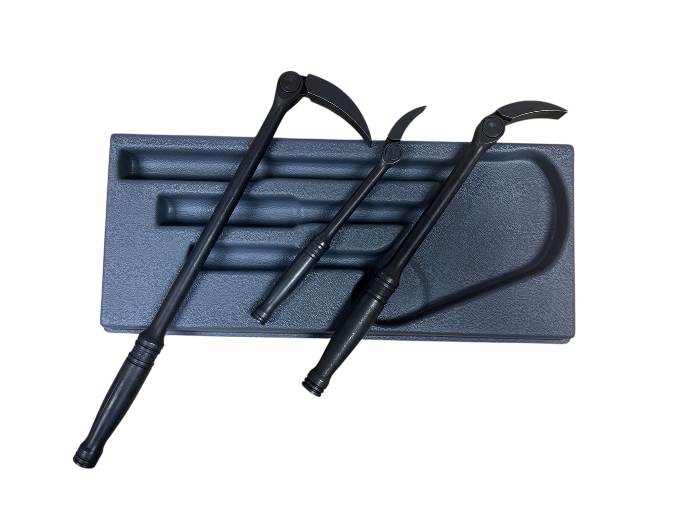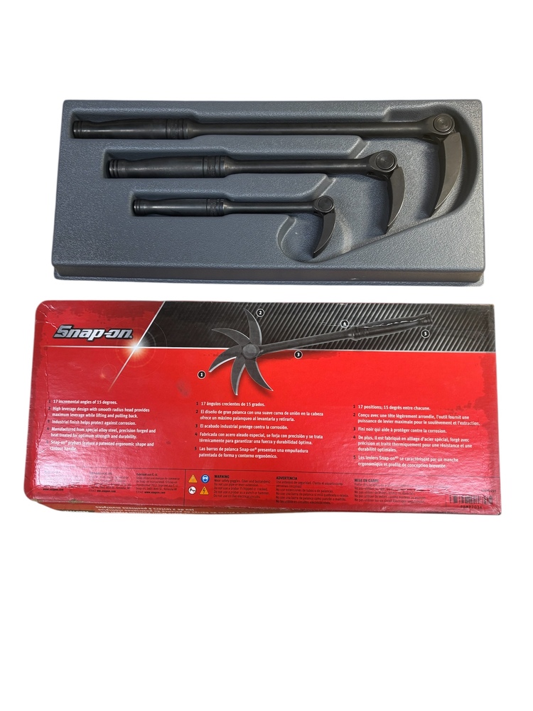 Snap-On PBMP703A 3-piece pry bar set, renowned for durability and versatility, is used but in good condition. The set boasts a multiple-position function in 3 diffrent sizes, providing flexibility in use. Ideal for professionals requiring reliable tools. Add this robust set to your toolbox for effective prying operations.