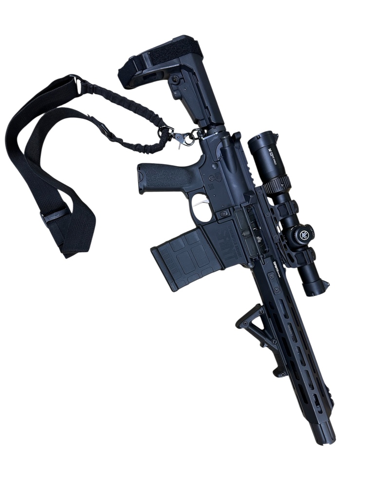 SPRINGFIELD SAINT VICTOR, SEMI AUTOMATIC HANDGUN, CHAMBERED IN .308 WINCHESTER. COMES WITH ONE MAGAZINE, ORIGINAL SOFT CASE, MAGPUL ANGLED FOREGRIP, VORTEX STRIKE EAGLE 1-6X24 SCOPE, & QUICK MOUNT SINGLE POINT SLING. FIREARM IS A HANDGUN AND CAN ONLY BE SOLD TO WV RESIDENTS. ALL FIREARM PURCHASERS MUST COMPLETE AND PASS A BACKGROUND CHECK.