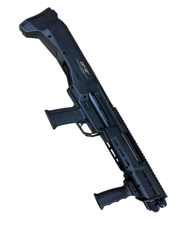 STANDARD MANUFACTURING MODEL DP-12, PUMP ACTION SHOTGUN, CHAMBERED IN 12 GAUGE. PUMP ACTION DOUBLE BARREL, 18 INCH BARREL. ALL FIREARM PURCHASERS MUST COMPLETE AND PASS A BACKGROUND CHECK